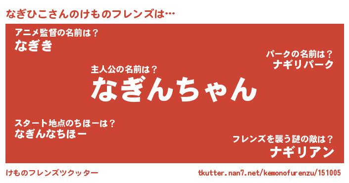 | 2回繰り返すあだ名 | 『なぎなぎ』『だるんだるん』 |