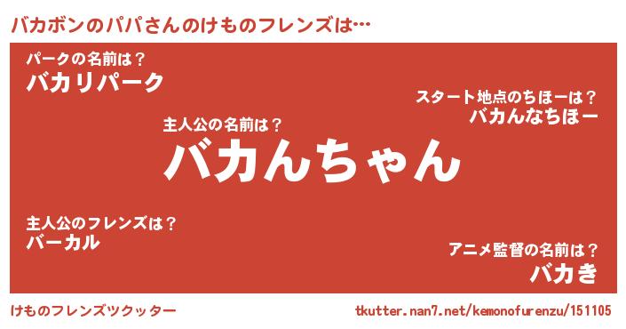 | 意味不明あだ名 | 『住所不定無職バカボンのパパ(12歳)』 |