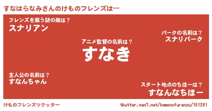 | ヘコむあだ名 | 『すなっぺ』『つくし』『すなにゅー』 |
