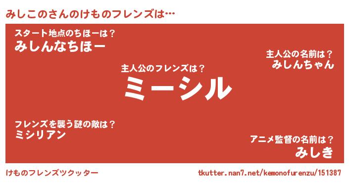 | 意味不明あだ名 | 『永久保存みしこの』『ペロリンみしこの』 |