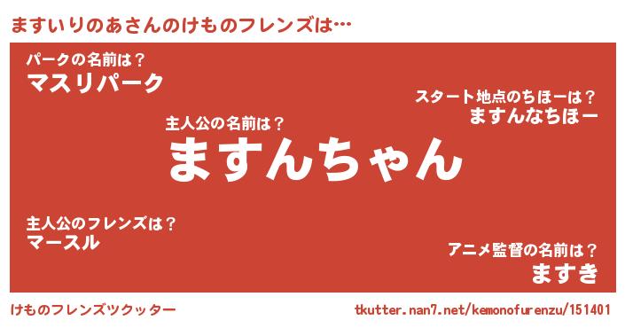 | 意味不明あだ名 | 『住所不定無職ますいりのあ(56歳)』 |