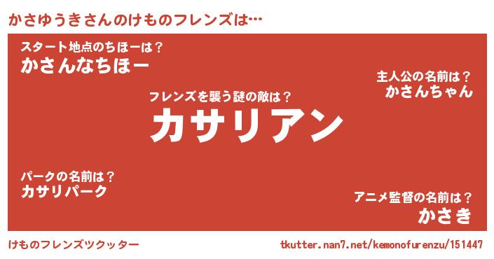 | ポケモン風あだ名 | 『カックウザ』『カサユダネ』 |