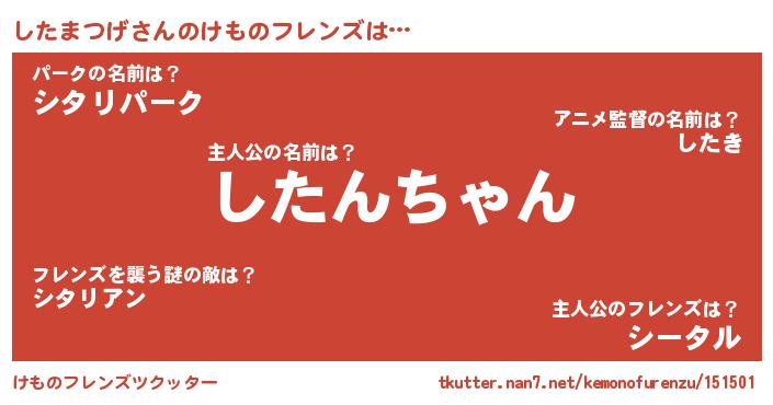 | ヒーロー風カッコイイあだ名 | 『スーパーシタマツゲ』『ネオシタマツゲ』 |