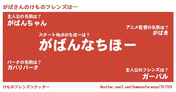 | 2回繰り返すあだ名 | 『ががばば』『がばがば』『しんしん』 |