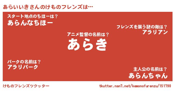 | ポケモン風あだ名 | 『アラキング』『ヒアライイキ』 |