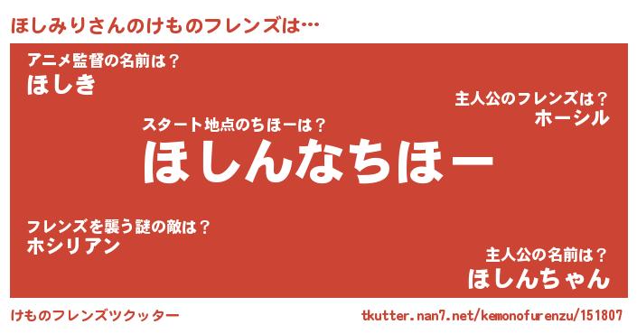 | 男性向けラノベタイトル風あだ名 | 『ほしみりに滅ぼされるだけの簡単なお仕事です』 |