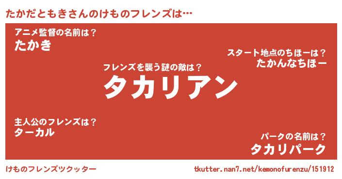 | 男性向けラノベタイトル風あだ名 | 『おまえをオタクにしてやるから、俺をたかだともきにしてくれ! 』 |