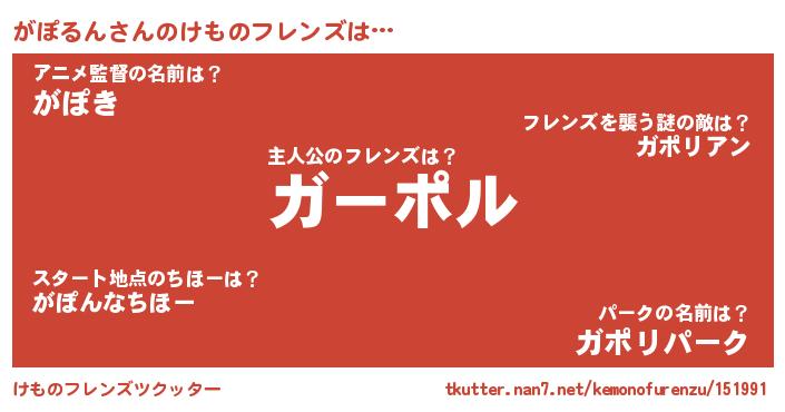 | ヘコむあだ名 | 『がぽるん(震え声)』『がぽを』 |