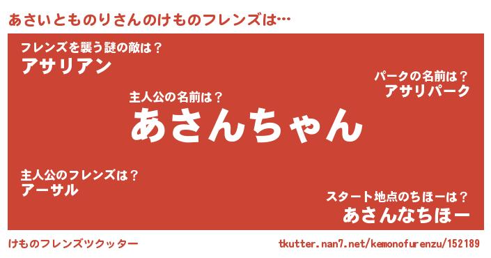 | 男性向けラノベタイトル風あだ名 | 『あさいとものりに滅ぼされるだけの簡単なお仕事です』 |