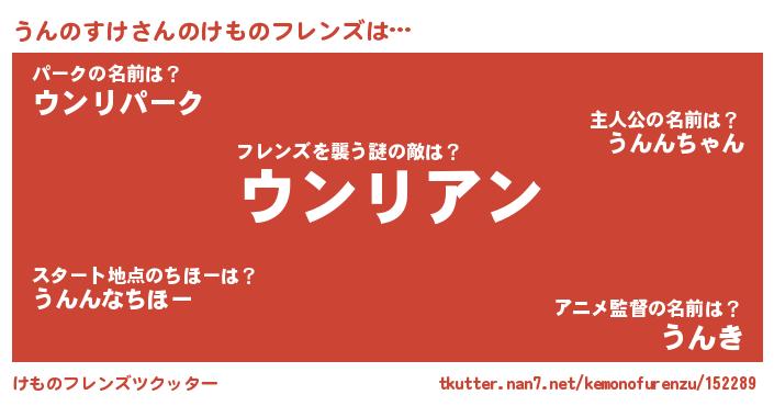 | 肩書あだ名 | 『うんのすけ助手』『うんのすけ総統』 |