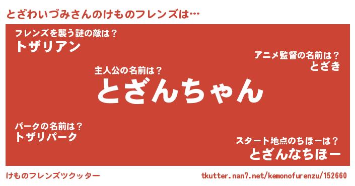 | 2回繰り返すあだ名 | 『とざとざ』『わいわい』『ととざざ』 |
