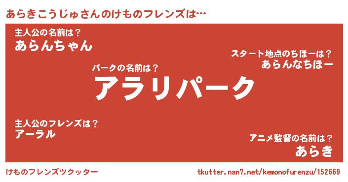 | 意味不明あだ名 | 『自称あらきこうじゅ』 |