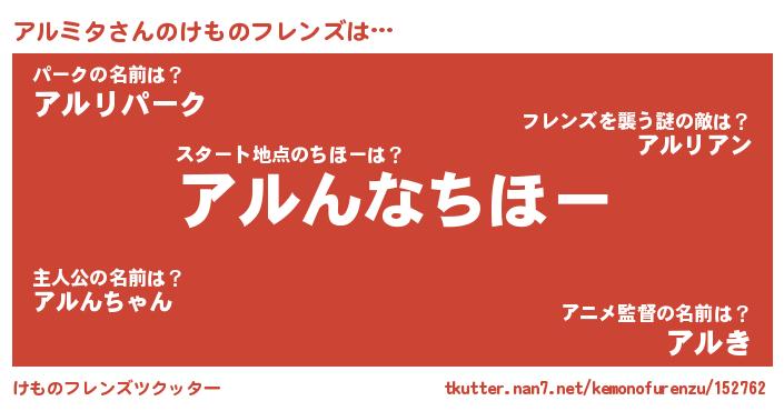 | 2回繰り返すあだ名 | 『アアルル』『しゃなりしゃなり』 |