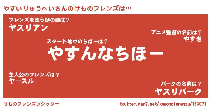 | 意味不明あだ名 | 『住所不定無職やすいりゅうへい(89歳)』 |
