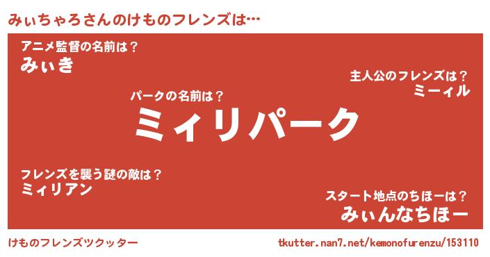 | 意味不明あだ名 | 『自称みぃちゃろ』『永久保存みぃちゃろ』 |