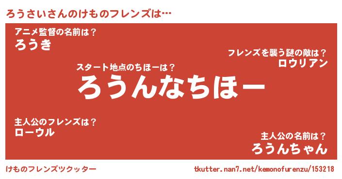 | 2回繰り返すあだ名 | 『わざわざ』『ろろうう』『ろうろう』 |