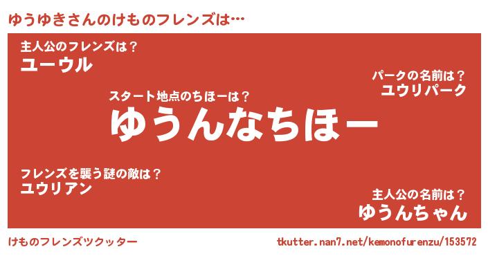 | 意味不明あだ名 | 『しいたけ科ゆうゆき属』『自称ゆうゆき』 |