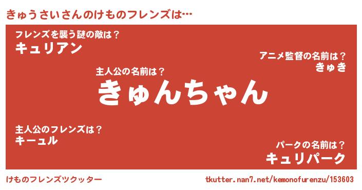 | 意味不明あだ名 | 『ペロリンきゅうさい』『自称きゅうさい』 |