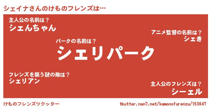 | 意味不明あだ名 | 『自称シェイナ』『ペロリンシェイナ』 |