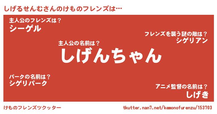 | 2回繰り返すあだ名 | 『しげしげ』『ちんちん』『くるくる』 |