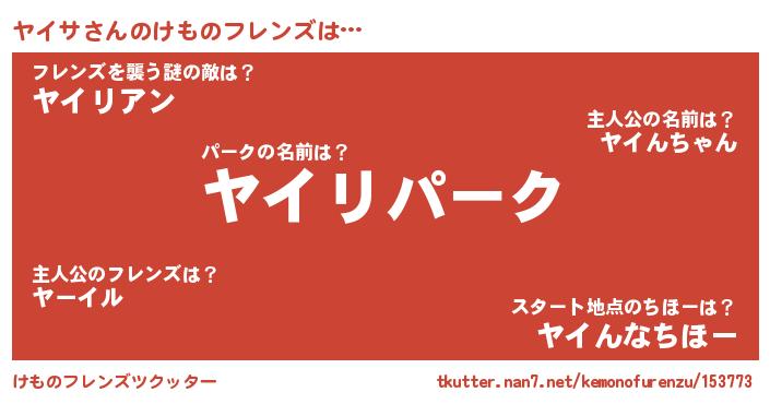 | ヒーロー風カッコイイあだ名 | 『最強戦士ヤイサ』『慈愛の使者ヤイサ』 |