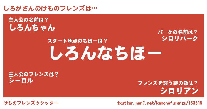 | 2回繰り返すあだ名 | 『ししろろ』『しろしろ』『どやどや』 |