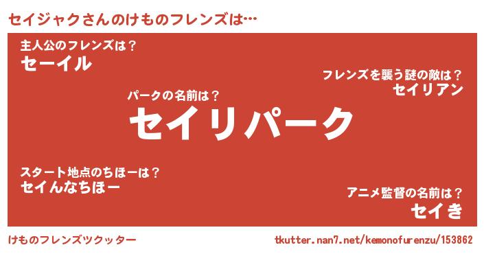 | 意味不明あだ名 | 『自称セイジャク』『永久保存セイジャク』 |