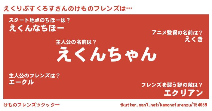 | 2回繰り返すあだ名 | 『えくえく』『わさわさ』『ええくく』 |