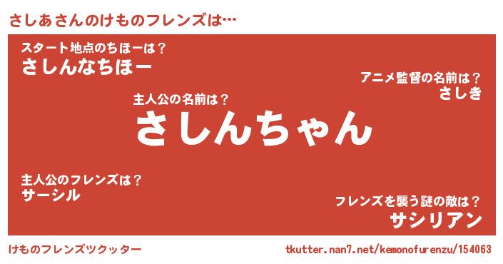 | 2回繰り返すあだ名 | 『ざくざく』『さしさし』『ささしし』 |
