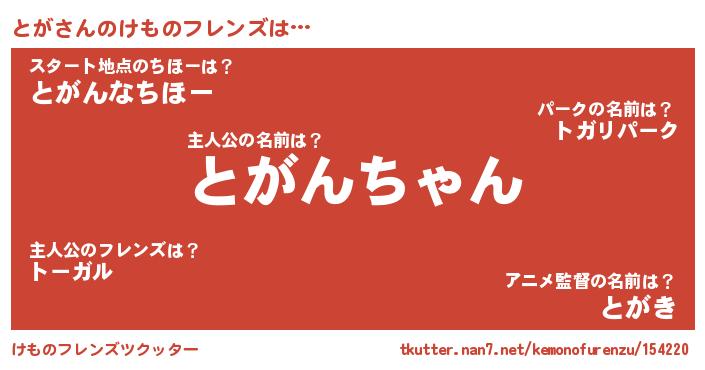 | 男性向けラノベタイトル風あだ名 | 『とがの憂鬱』『魔弾の王ととが』 |