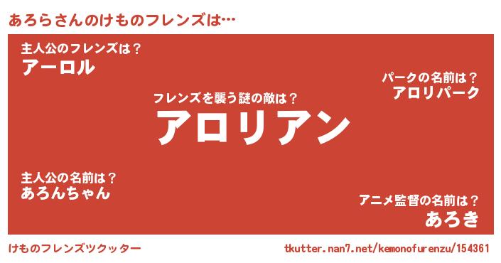 | ヘコむあだ名 | 『あろら(笑)』『あろお』『レバニラ』 |