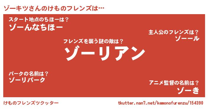 | ヒーロー風カッコイイあだ名 | 『慈愛の使者ゾーキツ』『幻影騎士ゾー』 |