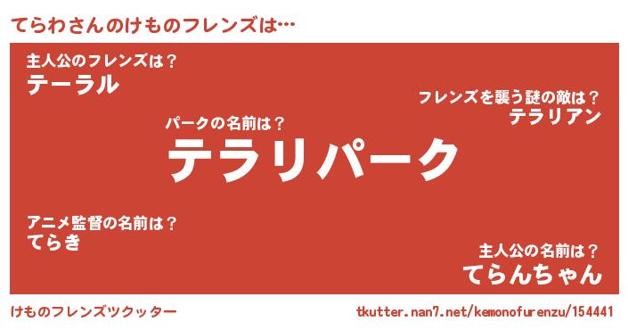 | 男性向けラノベタイトル風あだ名 | 『テラワスレイヤー』『緋弾のテラワ』 |