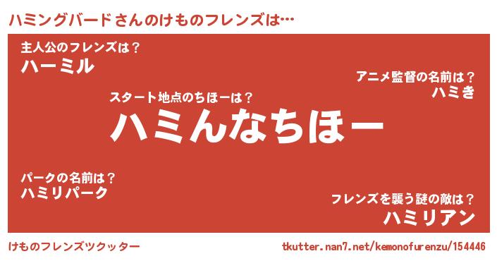 | ファンタジー風あだ名 | 『エターナルハミングバードー』 |