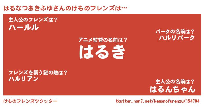 | ポケモン風あだ名 | 『ハルゴンZ』『ヒハルナツアキフユ』 |