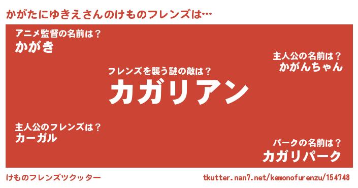 | 男性向けラノベタイトル風あだ名 | 『かがたにゆきえに滅ぼされるだけの簡単なお仕事です』 |
