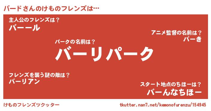 | 意味不明あだ名 | 『自称バード』『永久保存バード』 |