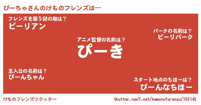 | ヒーロー風カッコイイあだ名 | 『炎刃騎士ピー』『天空の使者ぴーちゃ』 |