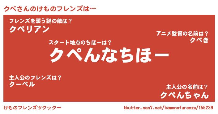 | 2回繰り返すあだ名 | 『ククペペ』『ぷるぷる』『クペクペ』 |