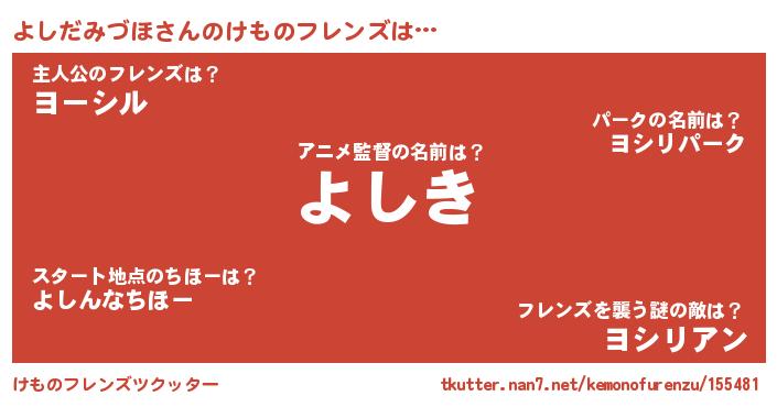 | ヘコむあだ名 | 『よしぷりん』『よしだみづほ(震え声)』 |