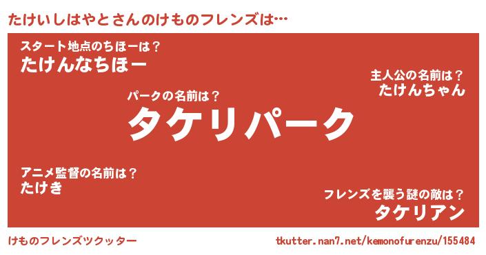 | ポケモン風あだ名 | 『タケゴンZ』『タケセウス』 |