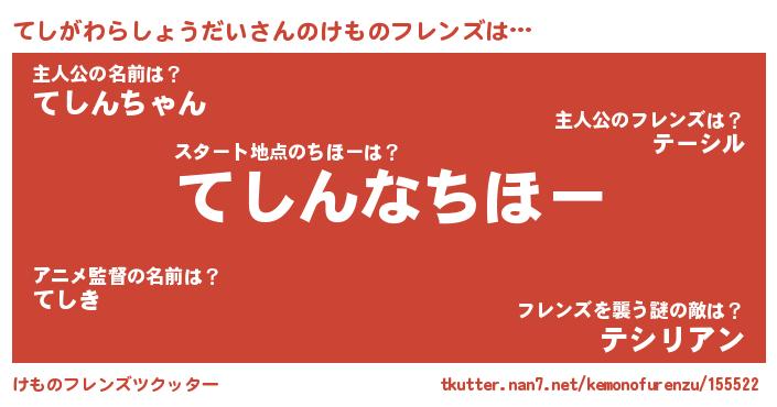 | 意味不明あだ名 | 『てしがわらしょうだいフォーエバー』 |