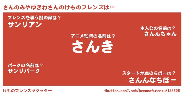 | 2回繰り返すあだ名 | 『あんあん』『はぁはぁ』『ささんん』 |