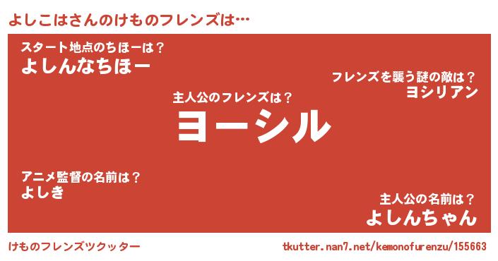 | ヘコむあだ名 | 『よしこは(爆)』『豆乳』『よしにー』 |
