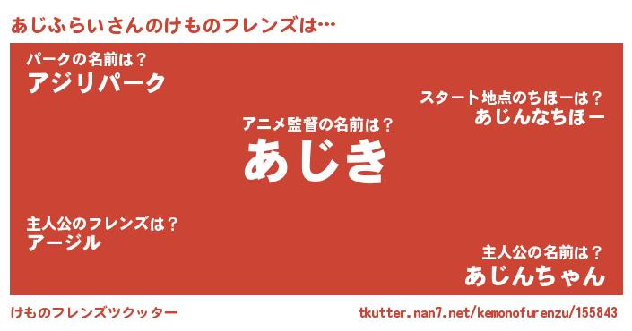 | 意味不明あだ名 | 『とにかく怪しいあじふらい』 |