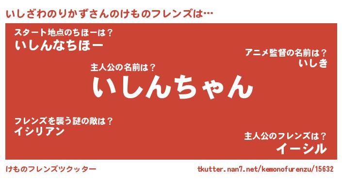 | 2回繰り返すあだ名 | 『いしいし』『いいしし』『ぞわぞわ』 |