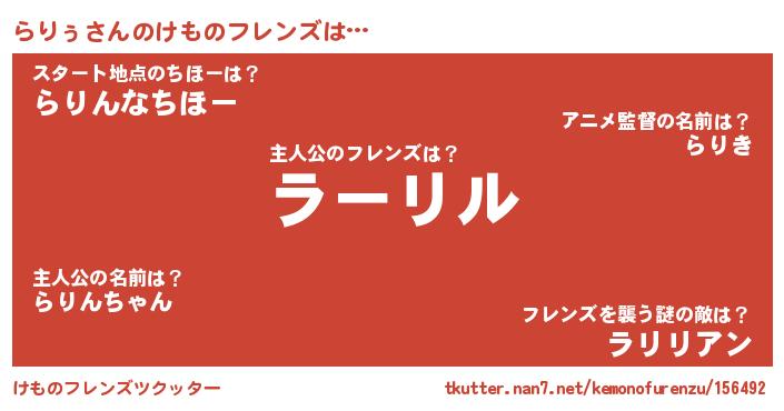 | ファンタジー風あだ名 | 『ラリディッシュ』『エターナルラリゥー』 |