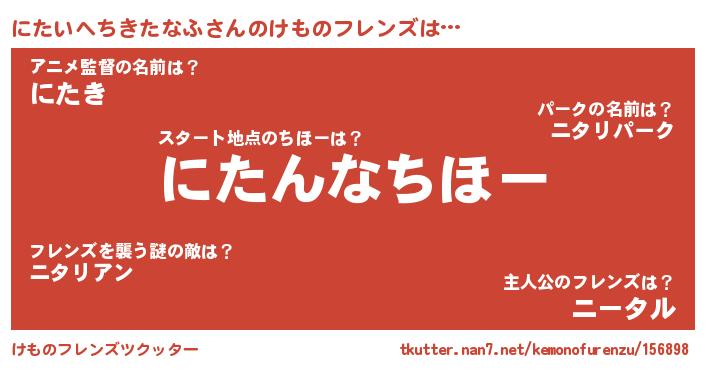 | 2回繰り返すあだ名 | 『ににたた』『ぬらぬら』『かーかー』 |