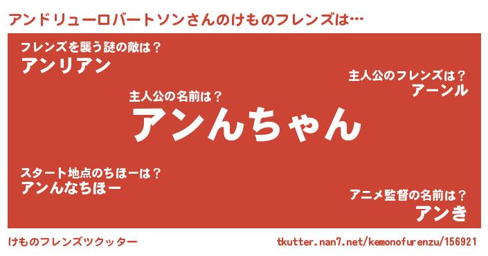 | ツイッター | アンドリューロバートソンさんのツイッターID『kikurage_kun』 |
