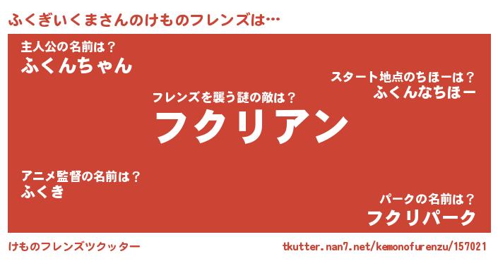 | ヘコむあだ名 | 『ふくにー』『つくし』『ふくお』 |